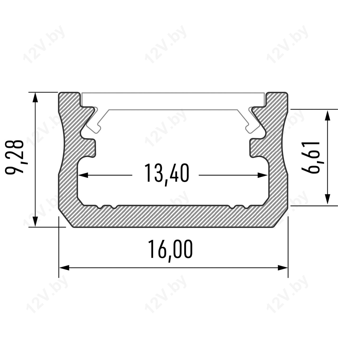 Алюминиевый профиль LM-A 1609 накладной 16х9х2000mm. Стальной анод.