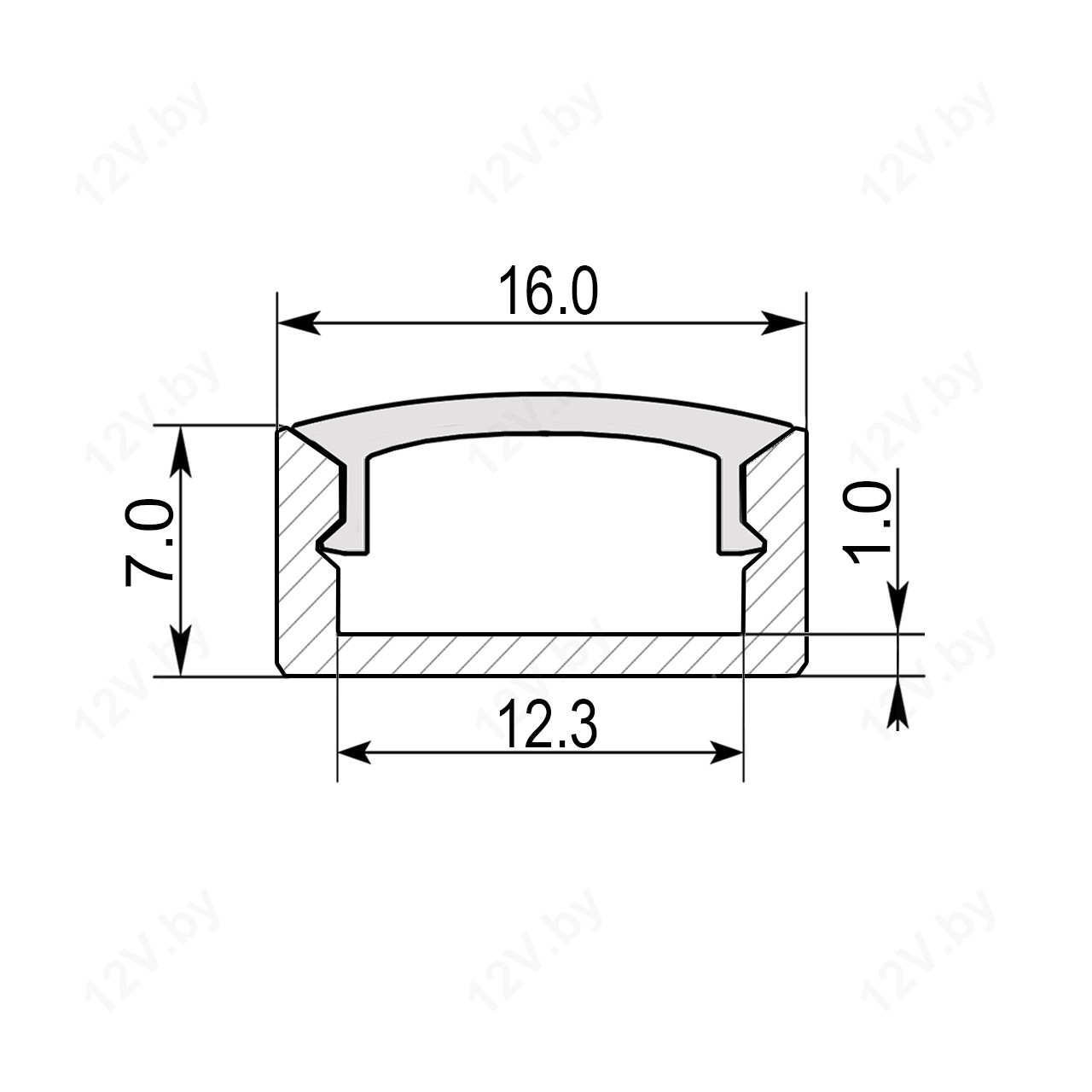 Черный накладной алюминиевый анодированный профиль для светодиодных лент и линеек. Ширина площадки под ленту 12.3 мм. Размеры: 16х7х2000 мм. Рассеиватели, заглушки, крепеж приобретаются отдельно. Цена указана за 1 метр. Отпускается кратно 2-м метрам.
