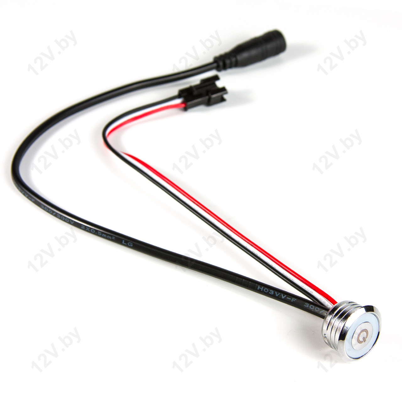 Кнопка сенсорная встраиваемого монтажа TS16-T с проводами. Питание подключается через разъем JACK 5.5мм. Светодиодная лента или другой источник подключается через SM-коннектор. Сенсорный переключатель служит для управления освещением. Включение/выключение при кратковременном касании, а при нажатие и удержании - плавная регулировка яркости.